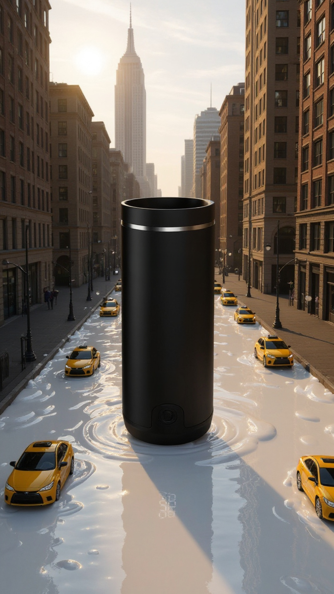 Scenes where the product stands as an oversized landmark among skyscrapers, creating instant impact and scale.